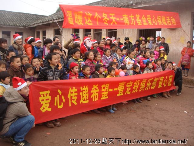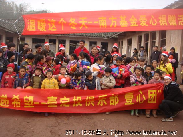 12月24日南方基金和多一度公益一行35人来到岳池雷锋小学实施暖冬计划,70余名孩子领到了过冬物资,这天恰逢圣诞节,来自全国各地的志愿者们和孩子们,村民们过了一个愉快的节日!在这偏远的小山村里散发着浓浓的暖意,在此对来自2个公益组织的30多位志愿者表示深深的感谢!你们辛苦了!