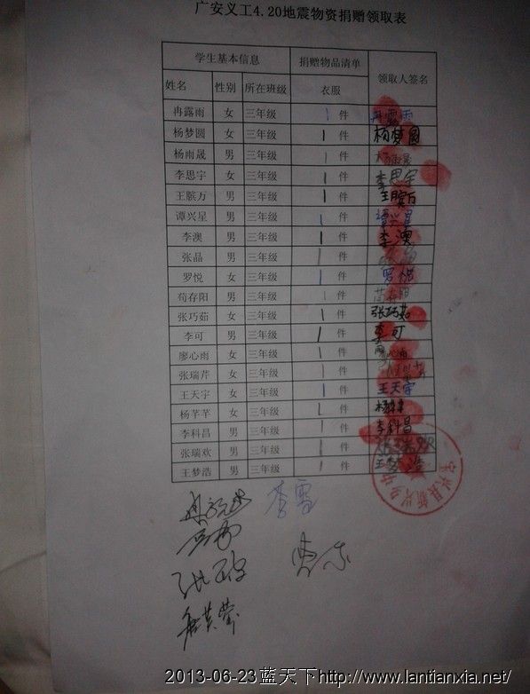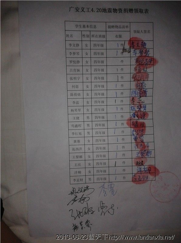 就在我们走访的时候,下午四点多钟,远在芦山县城的义工瘦马,送来了我们从广安汇寄过来的物资。同时,广安办公室及宣传组的刘伟、赵辉、子晓等义工也在密切关注我们的情况,并在广安义工网积极的报道。