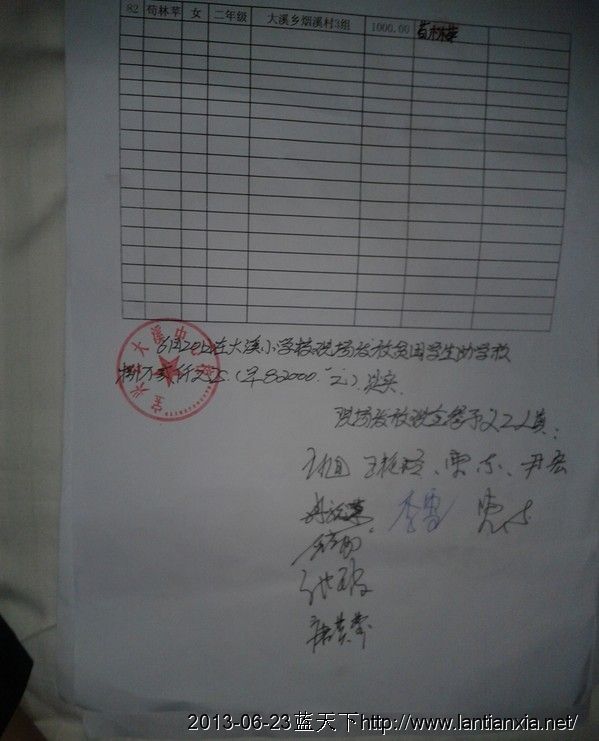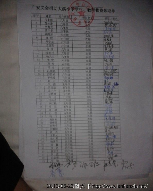 我们首要的工作是发放助学款,大家分工合作,有专门清点款项的,负责签字的,补充资料的,拍照存档的,组织排序队伍的。秩序井然,效率高。两三个小时就把大溪中心校与新兴小学两个学校的助学款发放齐了,个别家长没有到校的则由老师代为保管,转达给家长。还为新兴小学捐赠了体育与学习用品,花费22000元。