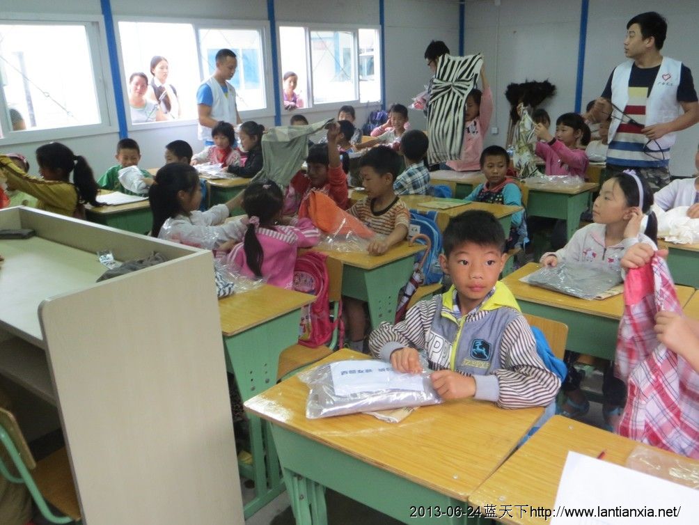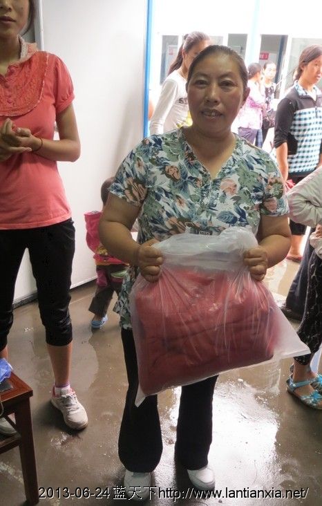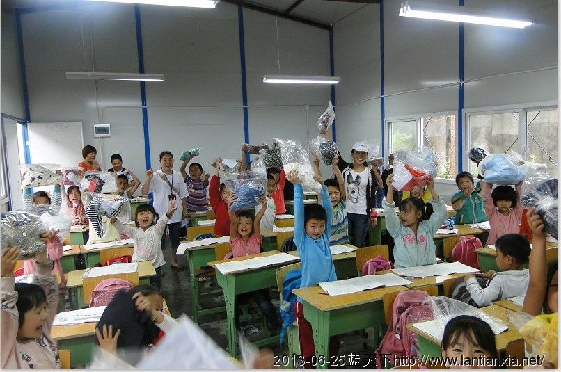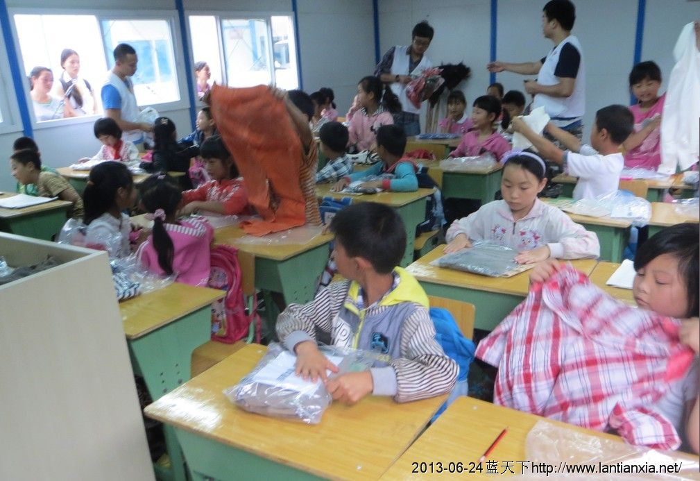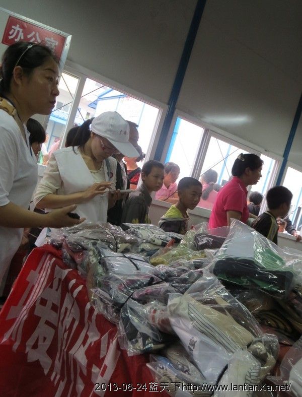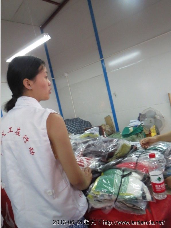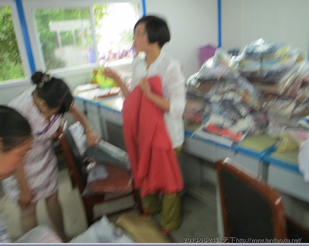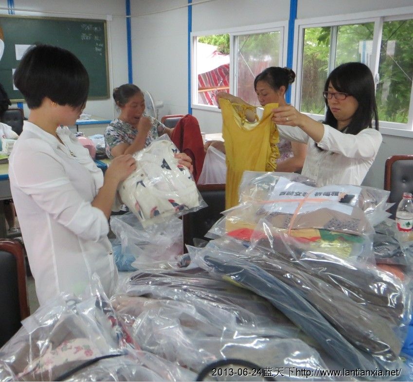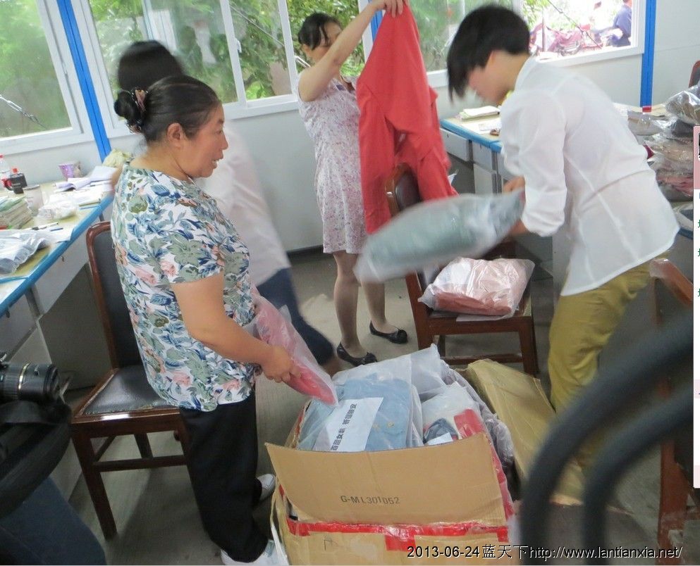 接着,我们就发放衣物,衣物是百丽牌女装,有教师的,也有学生,颜色款式多样。真正满足了他们的需要。