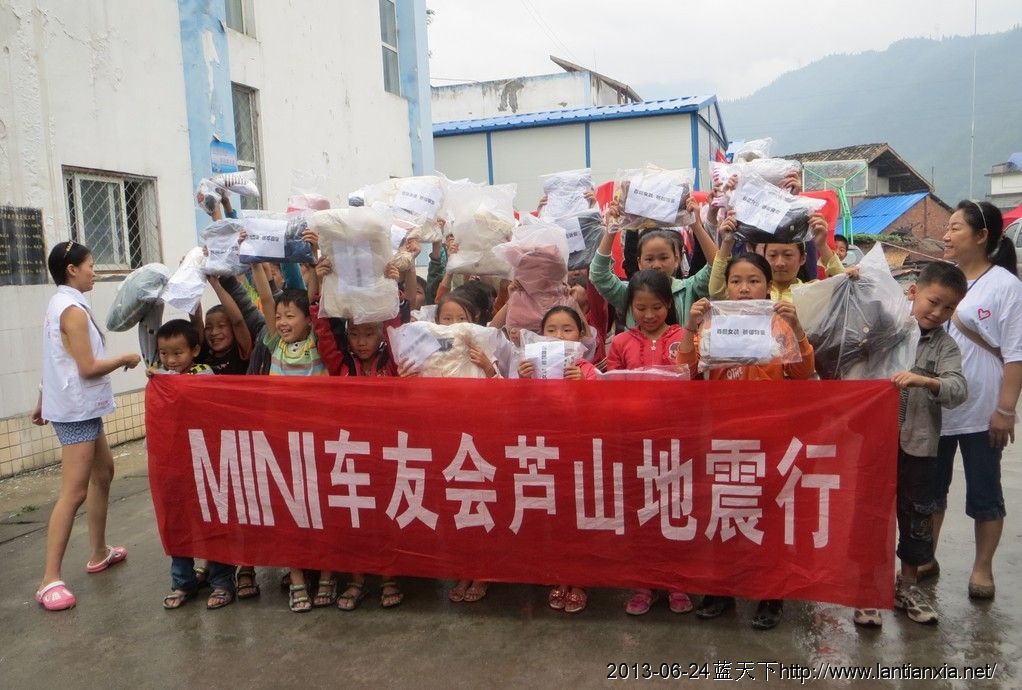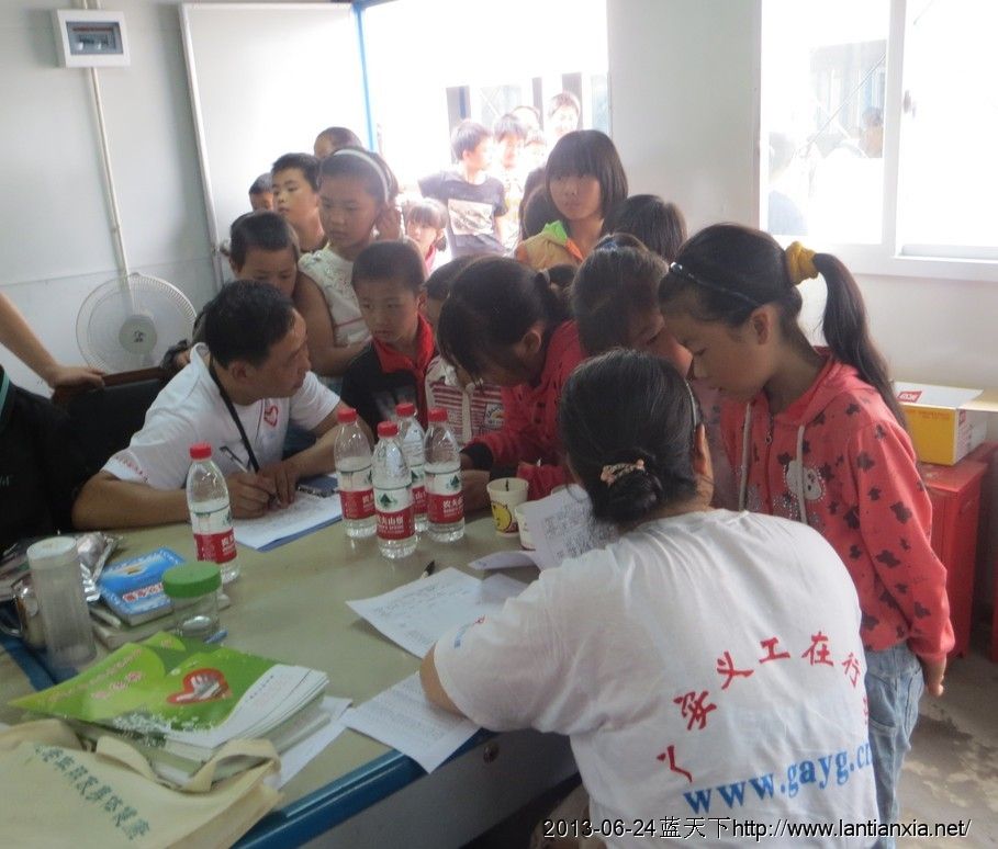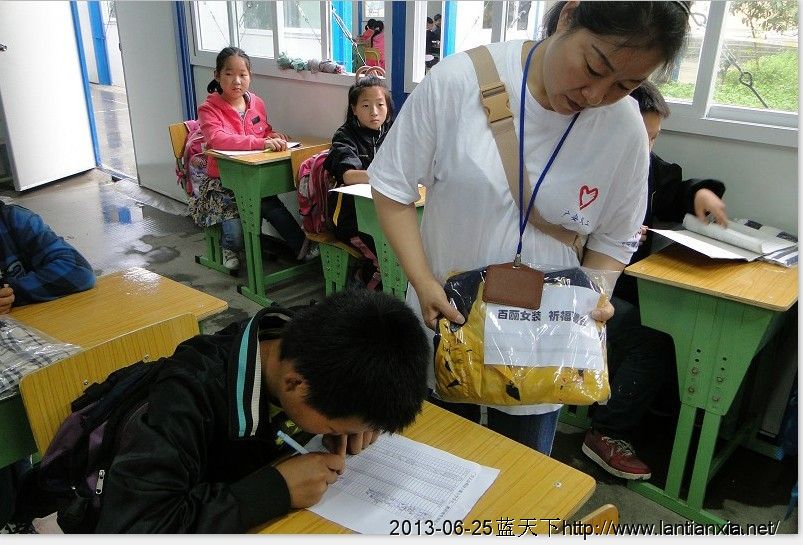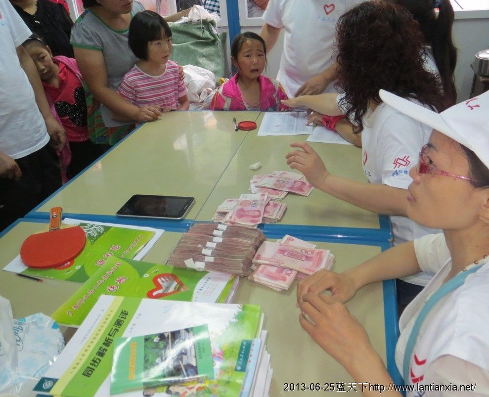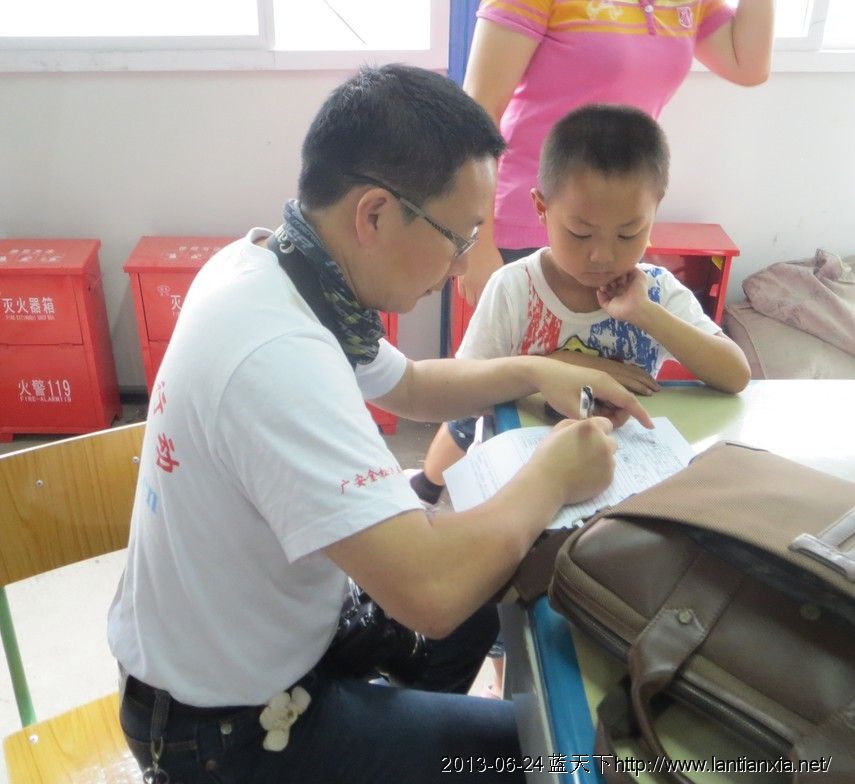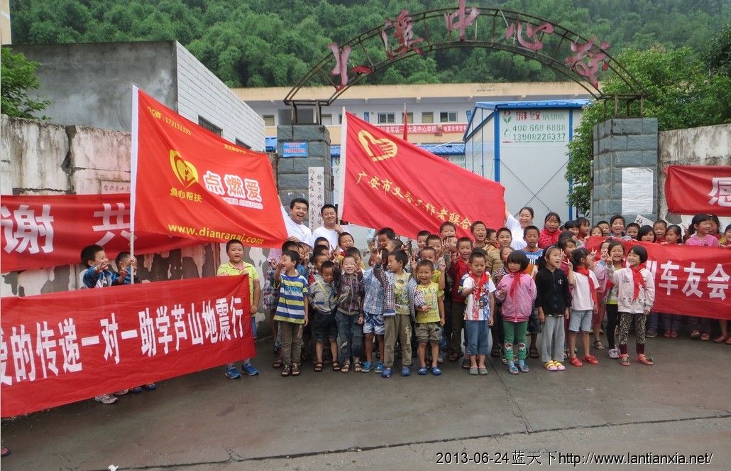 情系灾区,点燃爱心。6月18日上午八点半,广安义工在会长曹东、王艳玲以及陈国彬理事等的带领下,一行十七人开始奔赴雅安灾区,到宝兴县大溪镇送募捐的贫困助学款,同行的还有深圳与贵州的6位爱心人士。经过十多小时的长途跋涉,行程600多公里,于晚上九时到达目的地大溪中心校。沿途九曲连环,道路狭窄山势险峻,少数地方仍有塌方沉降的痕迹。目所及处,可以看到许多住户为预防余震而设的各式帐蓬,一些民房墙体裂痕赫然醒目,断垣残壁也时时可见。途中,我们还遇到热情指路的老乡,曾被《中亿之家》报刊报道的灾区最美老人64岁的高成芬。 到了学校,义工们顾不得劳累,马上到学校与留校孩子玩耍。并在吃晚饭时与校长商讨明后天的资助事宜。