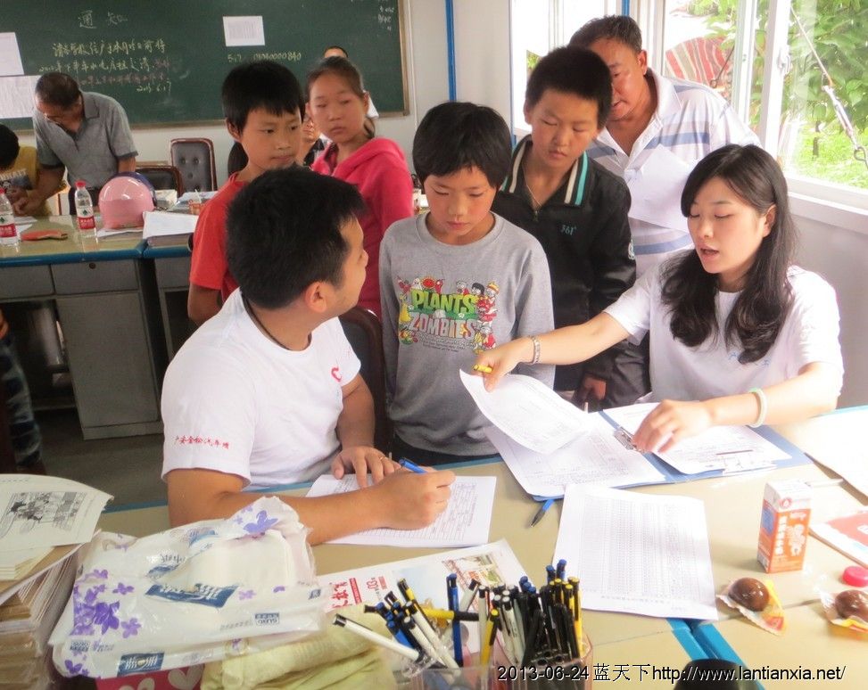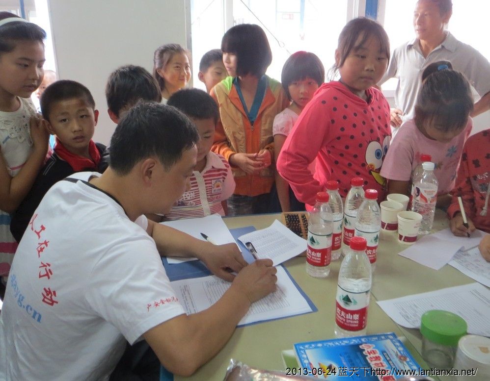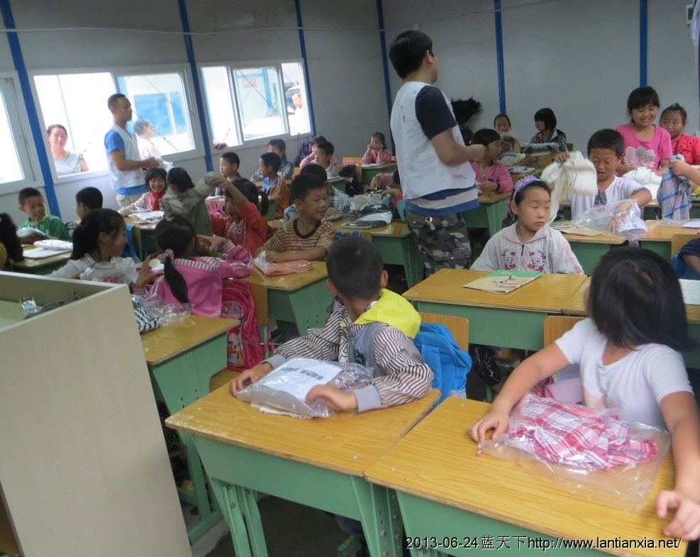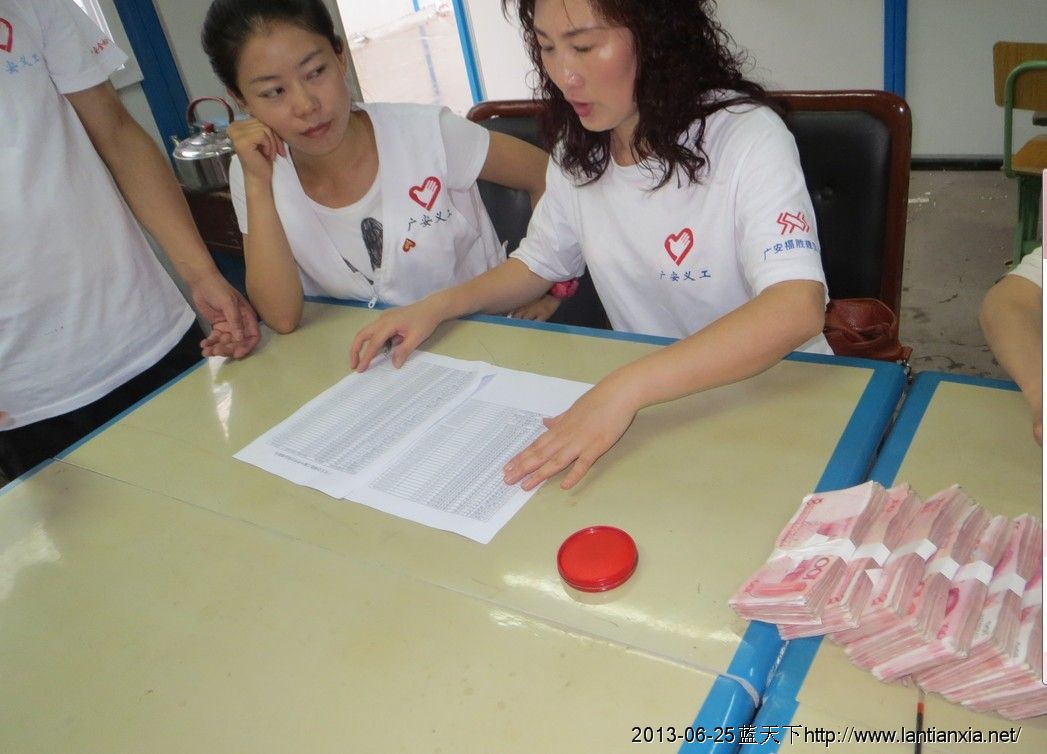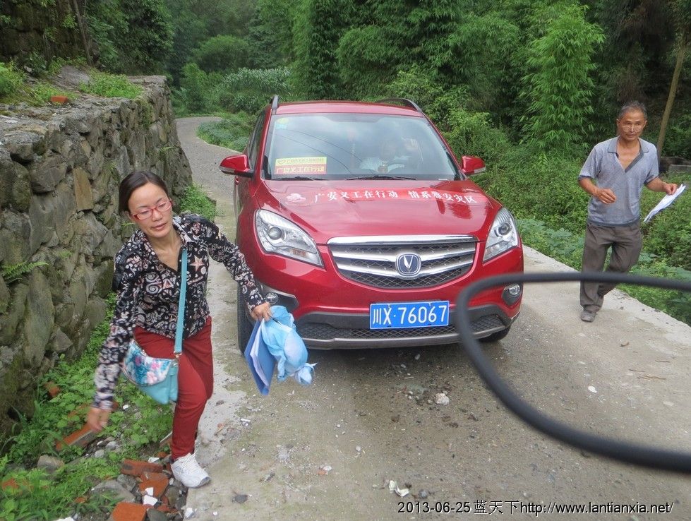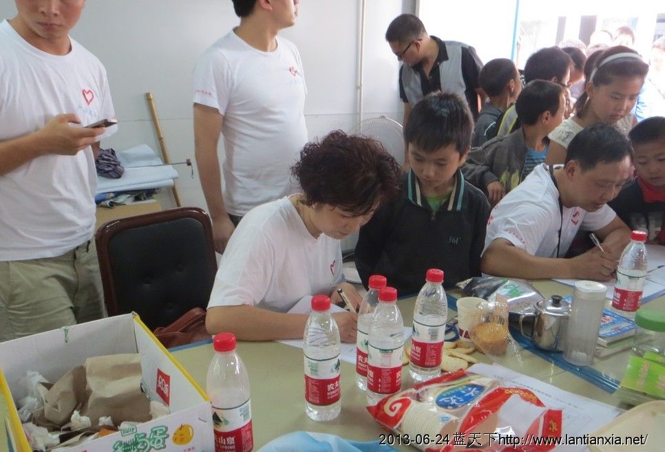 情系灾区,点燃爱心。6月18日上午八点半,广安义工在会长曹东、王艳玲以及陈国彬理事等的带领下,一行十七人开始奔赴雅安灾区,到宝兴县大溪镇送募捐的贫困助学款,同行的还有深圳与贵州的6位爱心人士。经过十多小时的长途跋涉,行程600多公里,于晚上九时到达目的地大溪中心校。沿途九曲连环,道路狭窄山势险峻,少数地方仍有塌方沉降的痕迹。目所及处,可以看到许多住户为预防余震而设的各式帐蓬,一些民房墙体裂痕赫然醒目,断垣残壁也时时可见。途中,我们还遇到热情指路的老乡,曾被《中亿之家》报刊报道的灾区最美老人64岁的高成芬。 到了学校,义工们顾不得劳累,马上到学校与留校孩子玩耍。并在吃晚饭时与校长商讨明后天的资助事宜。
