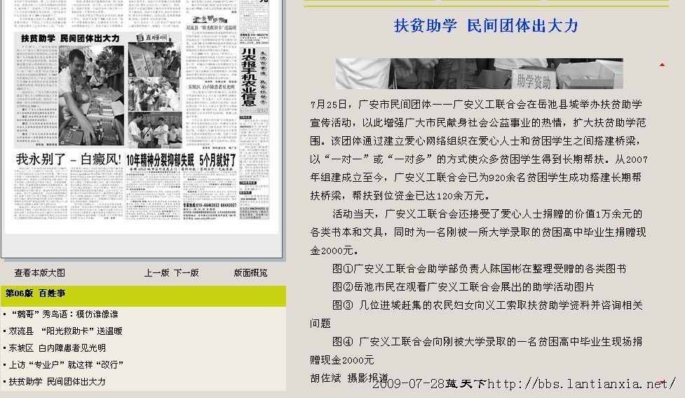 四川农村日报报道的蓝天下助学活动