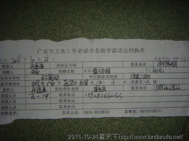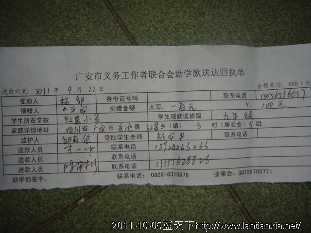 发李明100元,杨邹100元,薛新星100元,杨青青100元,何乾坤100元,杨清滔100元,杨豪100元