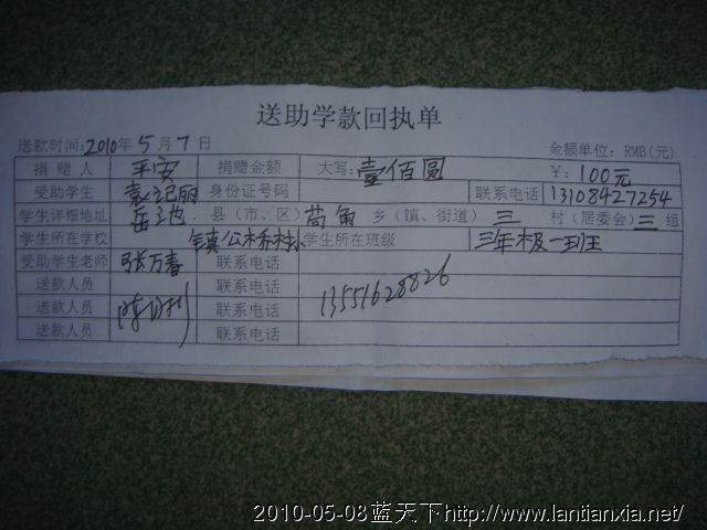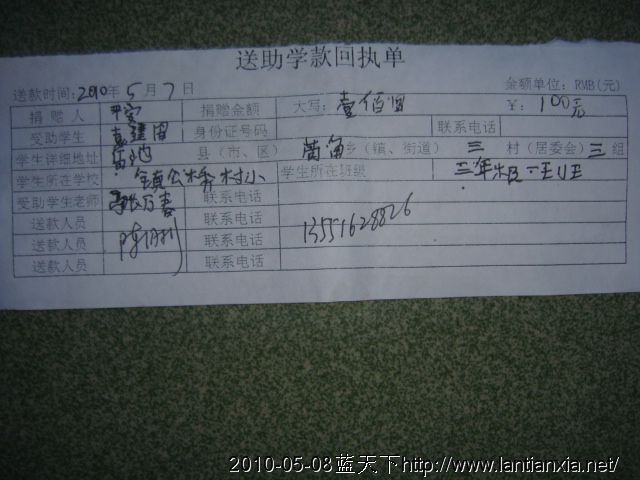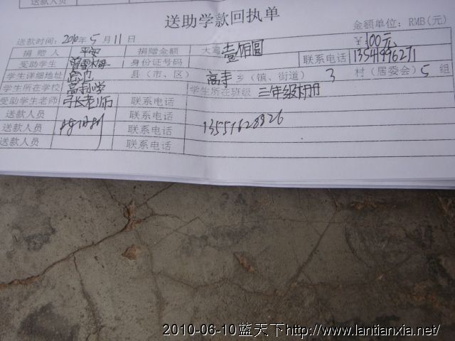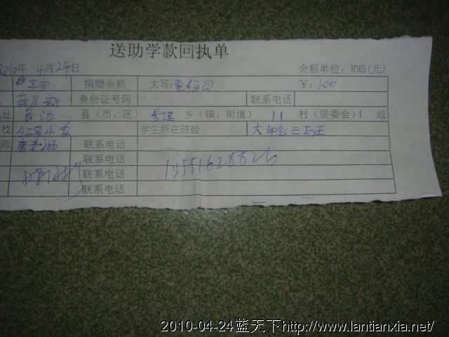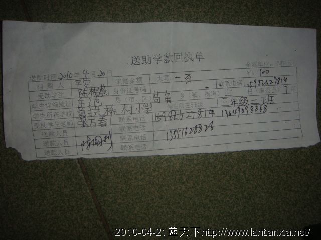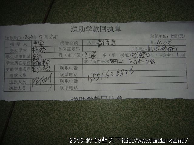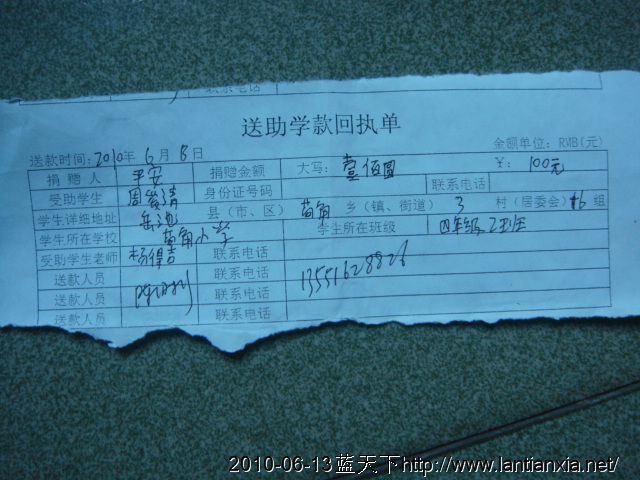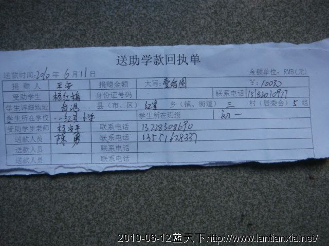 为了保证水淹区孩子的船费,小幺捐莫远容的治病款500元没有退出去,现在暂时转为船费,几次联系资助者都没有决定此笔善款的用途,故暂时捐在这里,若果资助者要改变用途,再从这里取出!