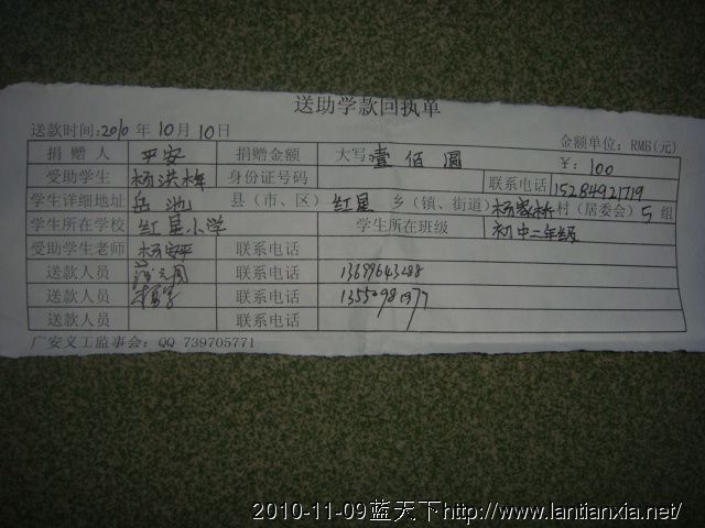 2010年下期发船费:曾混洪100,何乾坤100,何发菊100,曾杨100,曾佳100,杨凯100,邹萍洋100,杨蓉100,曾雪梅100,何青青100,曾意杰100,袁记丽100,杨力100,蒋松100,何仁海100,薛新星100,杨丽莉100,张彩彩100,唐龙100元,张字金100,何美芳100,刘张100,李超超100,李攀100,范小小鱼100,邹超100,杨洪丽100,杨洪梅100,杨清滔100,郑小军100,宋光明100,王丹100,王洪兵100元