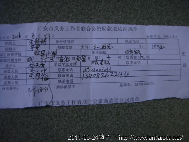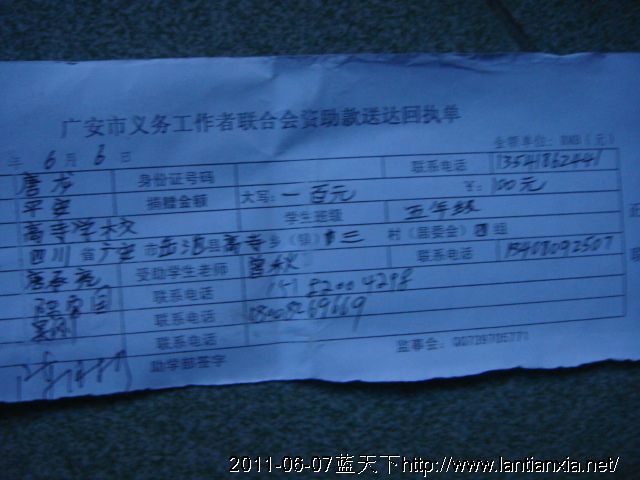 发杨洪丽船费100元,杨春梅100元,王洪兵100元,何佳丽100元,何玉莲100元,何发菊100元,唐龙100元,唐娟娟100元