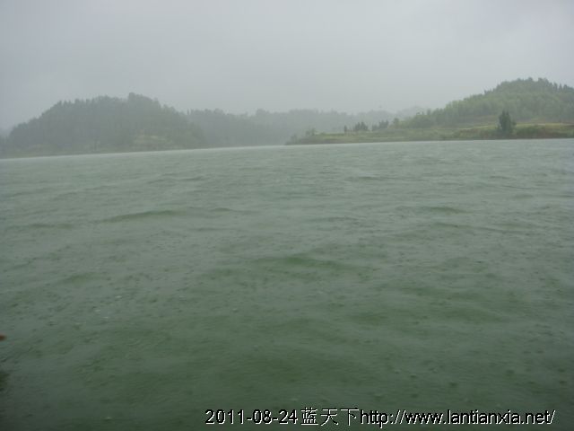一天到水淹区回访,途中恰遇狂风暴雨,小船差点翻了。
