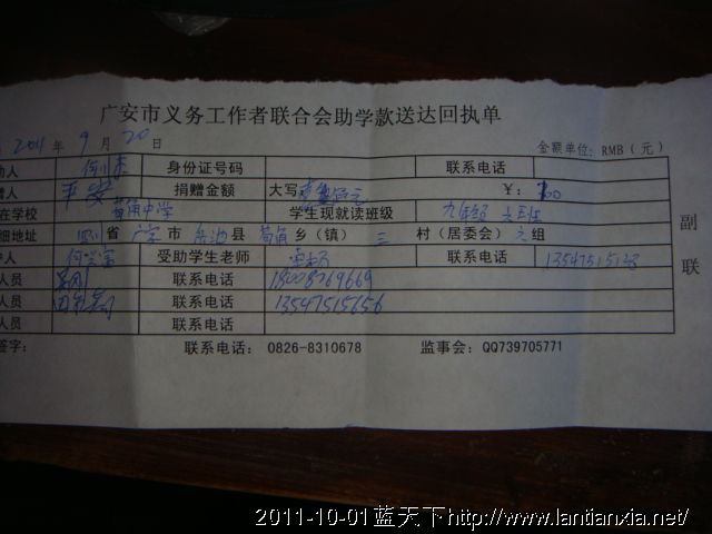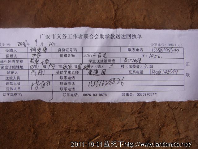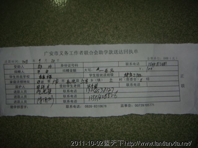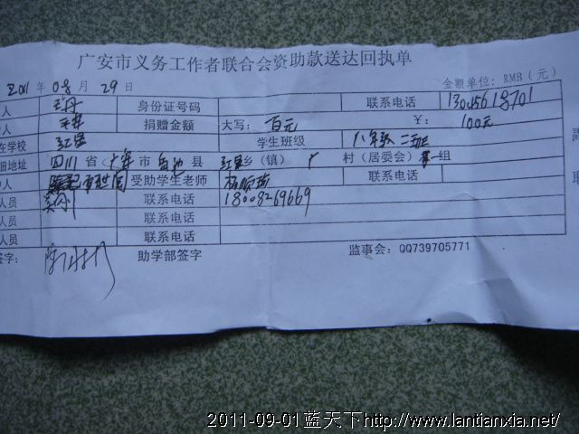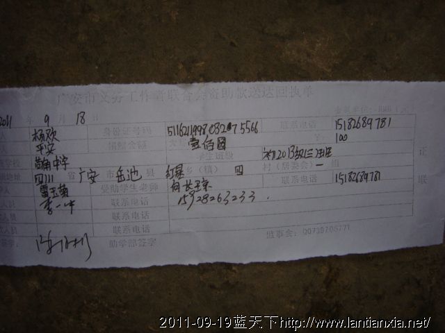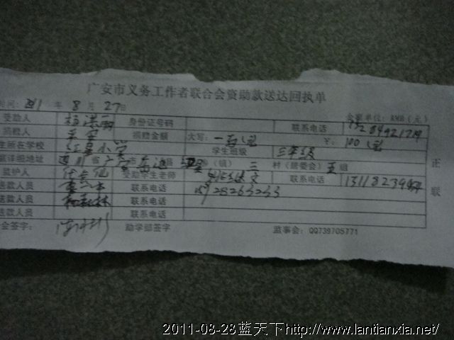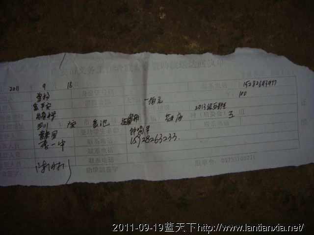 灾区学生启动资金剩余转船费5000元
