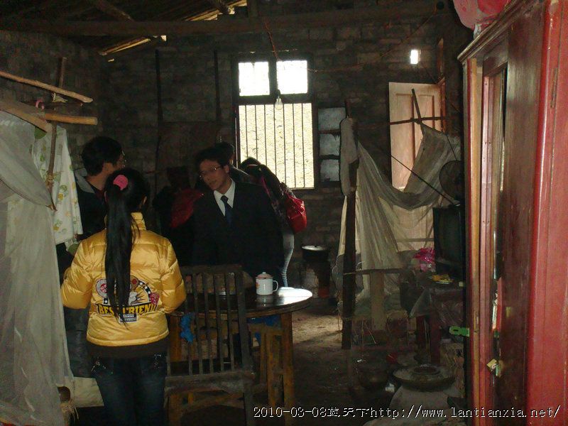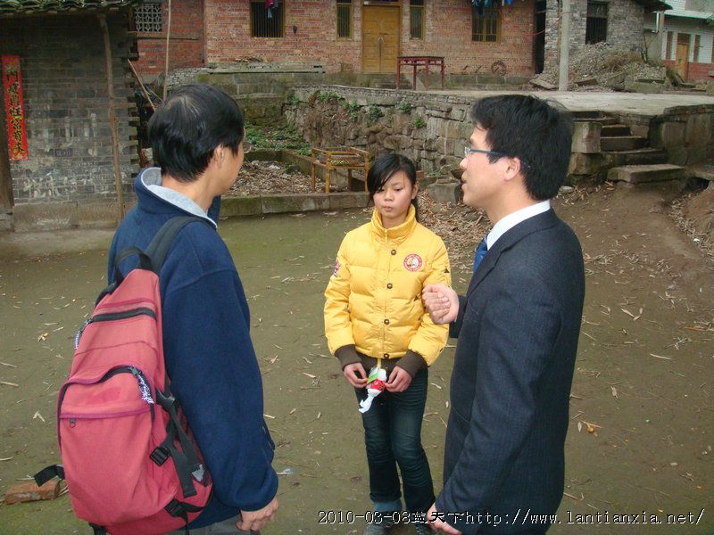 一路上,我们与陈叔叔交谈着,不知不觉就来到了悦来镇中心小学校。雨梦带着虹虹等候在校园里了。虹虹一见到陈叔叔,眼里含着泪花,低声给陈叔叔打着招呼。我们来到办公室,见着了虹虹的老师。老师说虹虹在校表现不错。虹虹的家离学校不远,我们步行,遇到志愿者杨柳青青,我们一会就到了虹虹的家。虹虹一家租住在马路边的两间危房不能住人了。雨梦和学校的老师们帮虹虹一家另租了一间房。我们来到了虹虹的租住房子里。虹虹的盲爸爸感觉有人来,忙招呼我们进屋坐。那是一件简陋的房子,室内光线阴暗,只有一颗电灯,估计只有25瓦。虹虹每天就是在昏暗的灯光下学习的。墙还有很多缝隙,寒风直往室内灌,我们都感到寒意,也不知道虹虹一家怎么度过寒冷的冬天的。虹虹的盲妈妈不知道我们的到来,还在用力的砍着木头,直到虹虹拉着妈妈的手,告诉陈叔叔来家里了,才停下。虹虹在信中曾告诉陈叔叔,老师帮他们代买的二手家具——桌子、柜子、日用品,还有她去挑水的井。陈叔叔都记得,逐一观看、询问。陈叔叔拉者虹虹爸爸的手,说他收养了个好女儿,虹虹是好样的。要离开了,陈叔叔一定要去看看虹虹挑水的地方,我们怕虹虹伤感,不便尾随陈叔叔一块去看井水。多可怜,多懂事的孩子啊!正因为爸爸妈妈不能料理生活,她承担了小小年纪不应该承担的家务活。许多的话还没有说,许多的情还没有诉,陈叔叔时间紧,还要去代市梭罗小学走访一个孩子,我们就此话别。