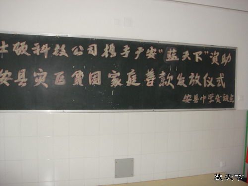 据广安“蓝天下”助学部负责人陈国彬老师透露,他们已在< http://bbs.lantianxia.net>开辟了安县专版,计划长期为安县灾区更多贫困学生筹集助学资金。