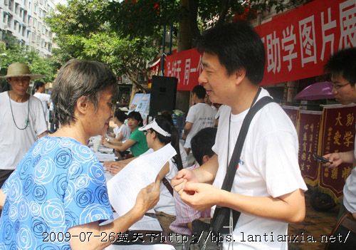 2009年7月25日,岳池县义工联合会在岳池县大东街开展蓝天下大型助学图片展览活动,来自广安、邻水、