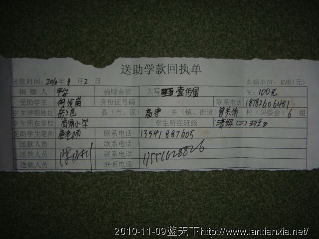 · 感谢蓝天下所有爱心人士的奉献,愿水淹区的孩子能上好学,能过上好生活。 雨梦 发表于 2010/3/10 20:56:00