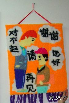 我们在给“广安市特殊教育学校”的聋哑孩子送衣物时,我们看到了身残志更坚的孩子们。一幅幅精美的刺绣,一张张鲜活的图画,一件件手工制作,还有那优美的手式和灿烂的笑脸,无处不渗透着他们的美好的心灵和对来未来憧憬,让在场的人为之动容,感慨万千。