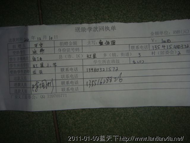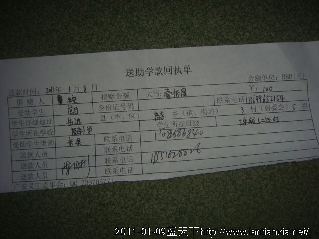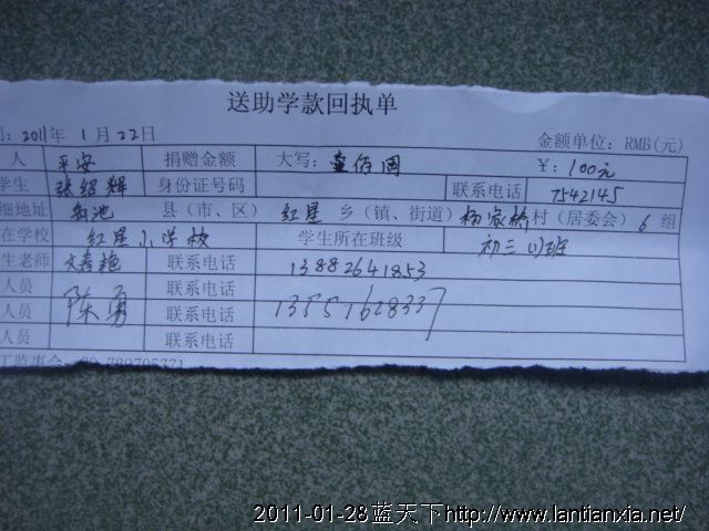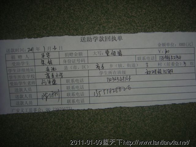 蓝天下相关联系方式:网站:www.lantianxia.net 蓝天下QQ群: 群一:1060329 群二:20029418 群三:9786912 群四:69848943 群五:83414209 资助群:58502949 大学生助学团:57387110 网站:www.lantianxia.net 〓物资募集〓:13193110 后勤宣传:58715682 助学娱乐群:56299408